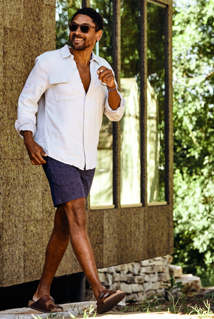 - Men: short-sleeve shirts, linen shirts, lightweight shorts or chinos